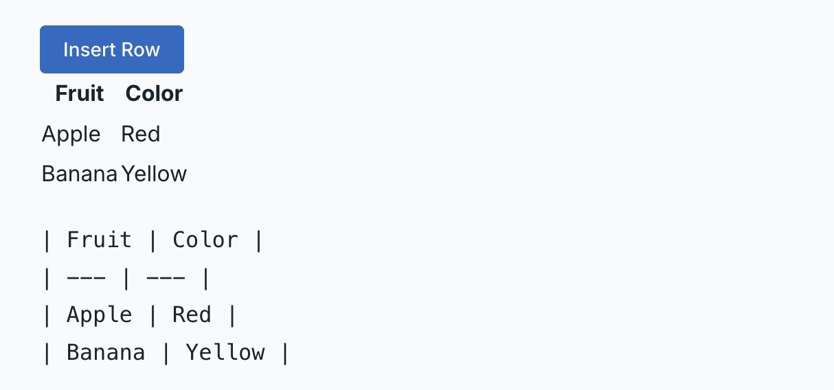 }Now the editor matches the look of XMLUI tables rendered directly using Table or indirectly when tables appear in a XMLUI Markdown context. Try it!