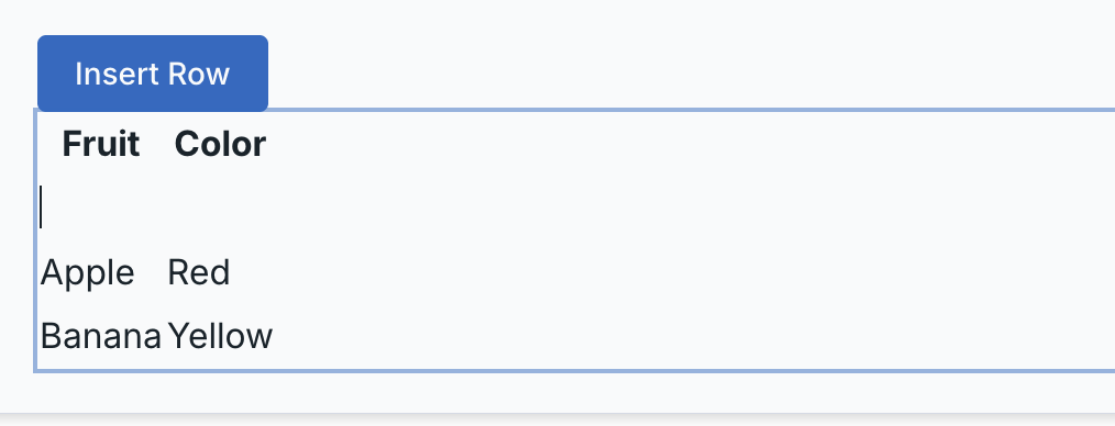 }Now the editor matches the look of XMLUI tables rendered directly using Table or indirectly when tables appear in a XMLUI Markdown context. Try it!